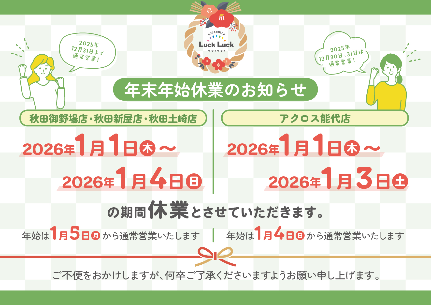 【LuckLuck秋田御野場店・秋田新屋店・秋田土崎店】